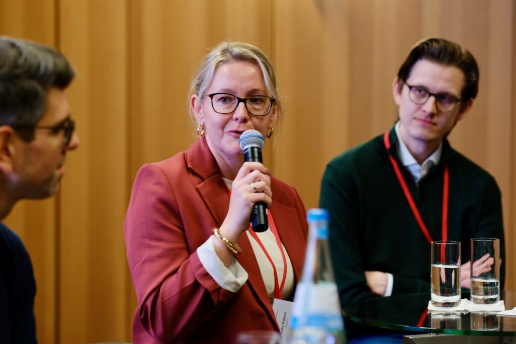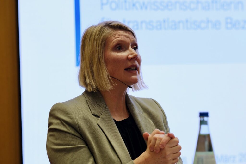 Cathryn Clüver Ashbrook, Politikwissenschaftlerin und Expertin für transatlantische Beziehungen, ordnete die aktuelle geopolitische Lage ein. Ihr Vortrag beleuchtete die Auswirkungen globaler Unsicherheiten auf die europäische Finanzwirtschaft und zeigte Perspektiven für Stabilität in einem sich wandelnden internationalen Umfeld auf.